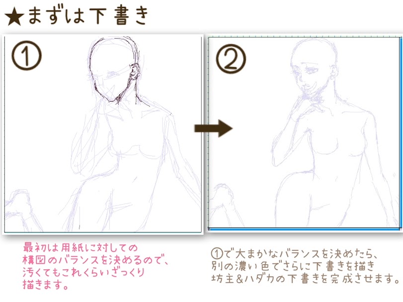 そうすると、このような「坊主&裸」の下書きが完成です。